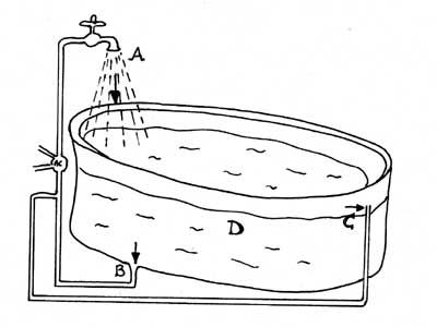 D : l'eau contenue dans la baignoire est mise en analogie avec notre tissu conjonctif