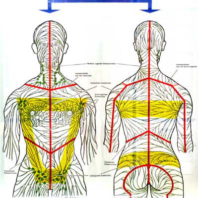 Imaginons une feuille d'arbre, vue par transparence, le réseau lymphatique est construit sur le